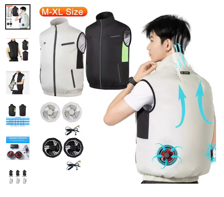 Le fan-jakketo ou “veste ventilée”. On la voit partout au Japon sur les travailleurs en extérieur. Bientôt en Europe ? L’histoire du Japonais qui inventa le « vêtement climatisé » et The fan jacket: the Japanese innovation keeping workers cool in extreme heat