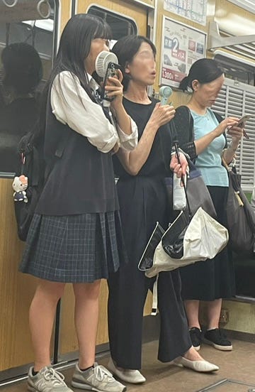 L’attirail ne s’arrête pas là. Les commuters japonais portent souvent, en plus de leur ombrelle, un ventilateur portable et un tour de cou réfrigéré.